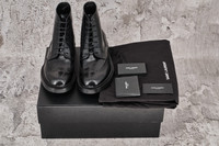 Brand New in Box Saint Laurent Army 20 Lace Up Boot in Brogue Swallow Tail. These boots are a nice middle ground between smart brogues and combat styles. They've been made in Italy with all the traditional details - like perforations, pinking and wingtips - and have thick rubber-lug soles. Featuring black polished leather (calf) , grosgrain pull tabs, leather linings, rubber-lug soles ,Lace-up .Dust bags, slp booklet and card included.. Size: 41 Color: Black Composition: 100% Calf Leather Outersole: 29.5cm Made in Italy Retail: 1045$ ▶️All items ship next business day after a clear payment. ▶️Free Shipping Worldwide With Tracking Number On All Orders.Express Shipping is available upon request.Telephone number is required. ▶️I always mark the parcels as "gift" with a low value. ▶️All items are Brand New / Never Worn and 100% authentic. I was a member of SZ and SuFu since 2008. ▶️NO TRADES.No Returns ,Reserves or Exchanges Accepted.