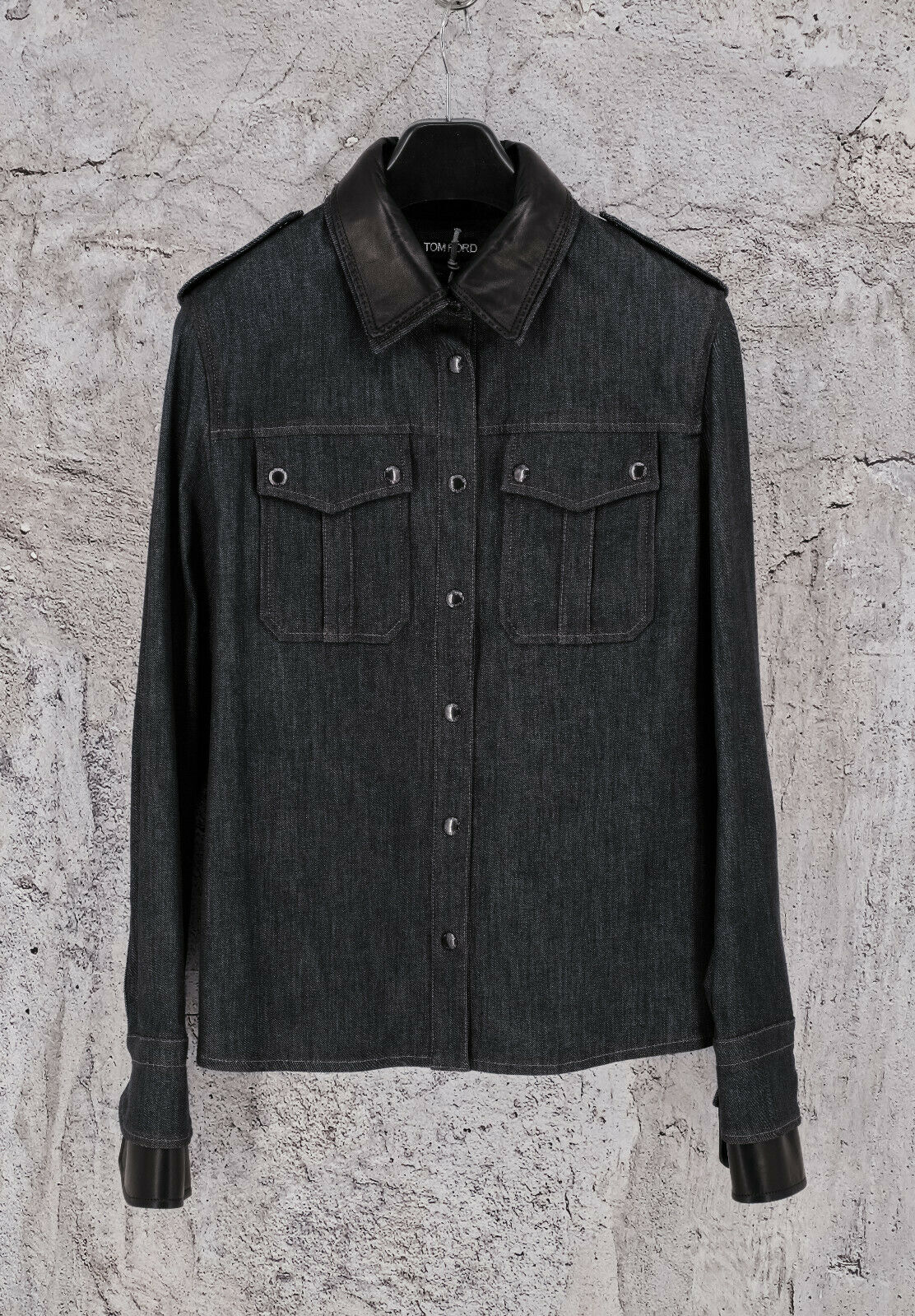 BRAND NEW TOM FORD DENIM AND LAMBSKIN LEATHER MILITARY BLACK SHIRT 44IT Brand New With Tags Tom Ford Military Button Up Denim Shirt Featuring a bonded leather on back panel ,double collar and cuffs ,gunmetal snaps and embossed TF logo. Sizes: 44IT Color: Black Composition: 99% Denim-1%Spandex(elastane) ,100% Leather (lambskin) Reference Code: CAD008DEX097 Made in Italy Retail: 2150$ Measurements Shoulder to Shoulder : 42cm Pit to Pit : 50cm Length: 63cm Sleeves: 69cm (until the end of the leather) .Leather part: 5cm ▶️All items ship next business day after a clear payment. ▶️Free Shipping Worldwide With Tracking Number On All Orders.Express Shipping is available upon request.Telephone number is required. ▶️I always mark the parcels as "gift" with a low value. ▶️All items are Brand New / Never Worn and 100% authentic. I was a member of SZ and SuFu since 2008. ▶️NO TRADES.No Returns ,Reserves or Exchanges Accepted.##