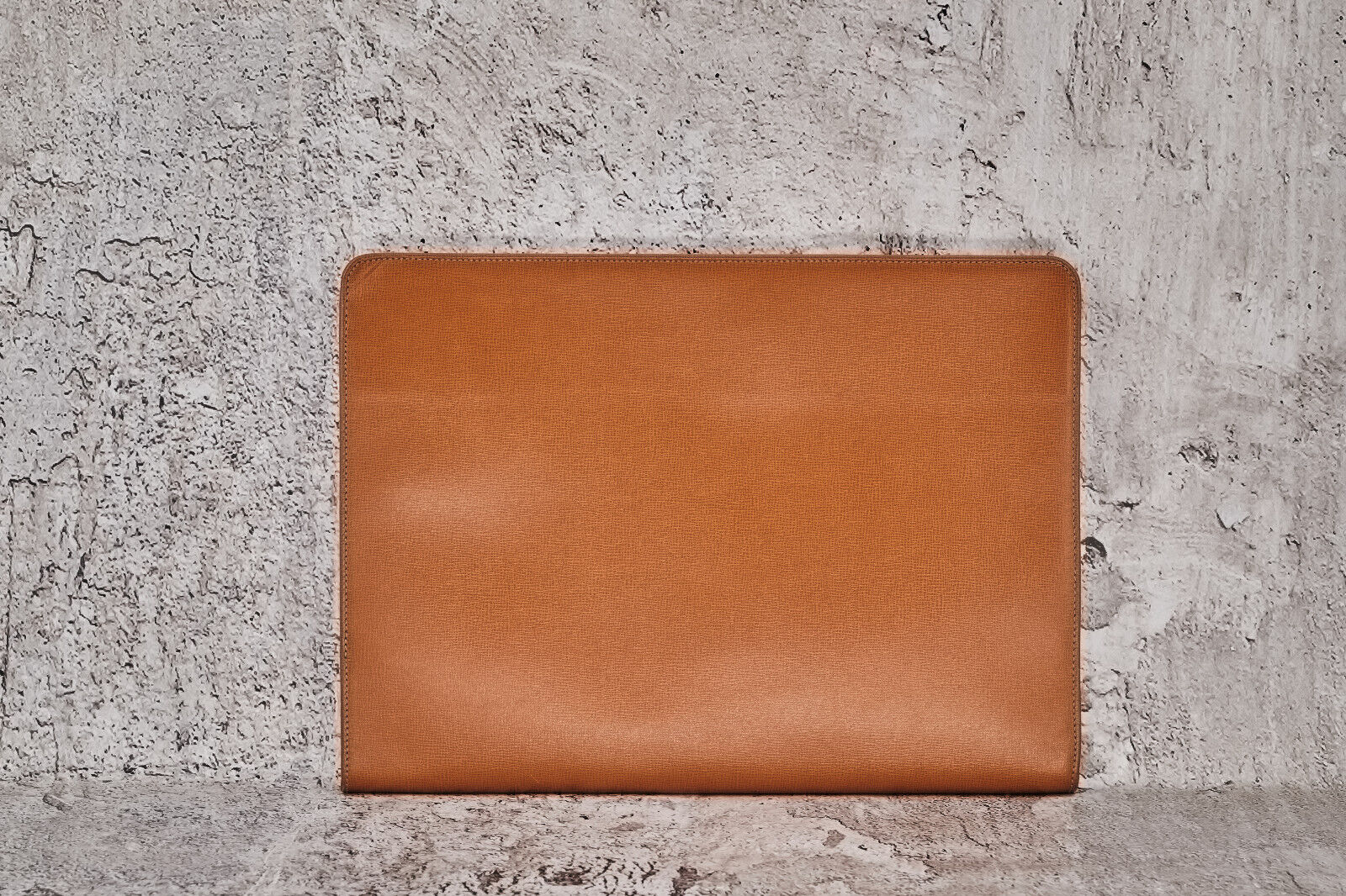 New Valextra Zip Around Envelope Bag An invaluable organizer for professionals on the move. Ideal for compact devices as well as documents, it has been engineered so the continuous silver zip glides around two sides to ensure its contents are readily accessible. Featuring one large inner zip pocket and 3 pen holders. Color: Tan (Light Brown) Composition: 100% Leather Dimensions W x H x D : 37cm x 27cm x 2cm Important Note: New without tags. Dust bag included. A visible scratch on the back side of the bag and a couple minor inside. Handmade in Italy Retail: 1950$