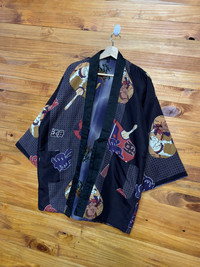 Kimono Japan Dragon - Vintage Reversible Tiger And Sumo Hanten Kimono Cardigan