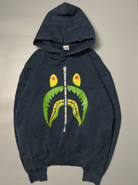 Vintage Bape Shark Japan Nigo Pullover Hoodie Navy