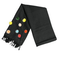 Classic Black Fendi Roma Wool Stole with Mink Pom Pom Design Made in Italy Measurement : 1800 mm x 450 mm / 70” x 18” In good used condition , minor signs of wear Worldwide shipping ( standard / dhl express ) *$20 additional for dhl express Sold as it