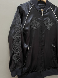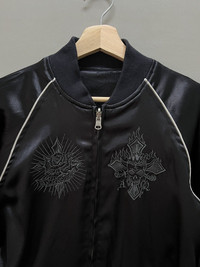 2000’s Algonquins Super Black Jacquard Embroidery Reversible Sukajan Jacket Made in : - Size on tag : - Measurement : 19” x 27” Characteristic : Reversible , Sukajan design can wear on any season , Jacquard floral design on 1 side and Crazy artwork Embroidered on the orher side , Algonquins tag Condition : Great condition Accept good offer Shipping worldwide Sold as it