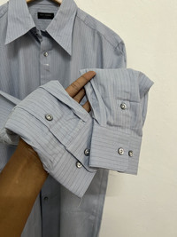 Tete Homme issey miyake pinstripes button down shirt blue