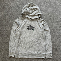 Vintage - Stussy Center Suede Logo Hoodie Grey