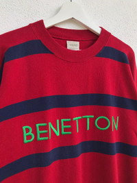 Vintage - Vintage 90s Benetton Big Logo Stripe Sweatshirt