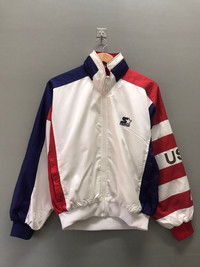 Vintage - Vintage Starter Big Logo Striped Usa Windbreaker