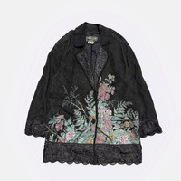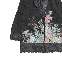 Vtg 70s Roberto Cavalli Flower Design Suede Leather Jacket