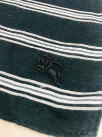 BURBERRY BLACK LINE HANDKERCHIEF POCKET SQUARE Tag : Burberry Measurement (approx.) : - Width : 18.5” - Length : 19” Color : Black Condition : Gently Used 9/10 PAYMENT & SHIPPING • Accept Paypal ONLY • Please leave your phone number on the note while make a purchase. • This item will be ship along with Tracking Number after received a completed payment. • Shipping Method : Standard International Shipping, ETA 4-6 weeks. DHL services upon request. Dear Valued Customer : • Please do not expect the item in mint condition unless stated. It’s because vintage and used items may have sign of wear. • Don’t worry about Custom tax fees during Shipping because I always declared all items as a Gift and wrote the value lower than original price usually $10 only • Please don't hesitate to contact me if you have any inquiries ATTENTION • Please pay close attention to the measurement provided. • Do not rely on tag size as pre-worn items may have been altered, stretched or shrunk & vintage sizes do not directly translate the current sizes. • The best way to ensure a correct fit is to compare our measurements with the measurement of a similar items that you know fits yours well. • Please enlarge the photos for clearer image. I don’t accept returns, exchange or cancellations. Please read the descriptions and see the pictures carefully! Don’t forget to check out my store for more great stuff. Thank you.