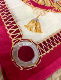CELINE PARIS HANDKERCHIEF SCARF Celine handkerchief/scarf with chain & rope theme design. Can be wear as handkerchief, bandana, scarf and pocket square. Tag : Celine Measurement (approx.) : - Width : 19 inches - Length : 18.5 inches Color : Red Condition : Gently Used 9/10 PAYMENT & SHIPPING • Accept Paypal ONLY • Please leave your phone number on the note while make a purchase. • This item will be ship along with Tracking Number after received a completed payment. • Shipping Method : DHL Express, ETA within 7 working days. Dear Valued Customer : • Please do not expect the item in mint condition unless stated. It’s because vintage and used items may have sign of wear. • Don’t worry about Custom tax fees during Shipping because I always declared all items as a Gift and wrote the value lower than original price usually $10 only • Please don't hesitate to contact me if you have any inquiries ATTENTION • Please pay close attention to the measurement provided. • Do not rely on tag size as pre-worn items may have been altered, stretched or shrunk & vintage sizes do not directly translate the current sizes. • The best way to ensure a correct fit is to compare our measurements with the measurement of a similar items that you know fits yours well. • Please enlarge the photos for clearer image. Please read the descriptions and see the pictures carefully! Don’t forget to check out and follow my shop so that you won’t miss out more and any new great stuff and great deals. Thank you. 👌🏻
