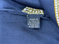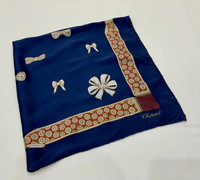 CHOPARD SILK SCARF Attractive dark blue silk scarf by Chopard with jewelery design. A scarf which allows you to tie it multiple ways and get different looks! You can wear it as a scarf, a head wrap, or a purse accessory! Tag : Chopard Measurement (approx.) : - Width : 34 inches - Length : 34 inches Color : Blue Condition : Gently Used 9/10 PAYMENT & SHIPPING • Accept Paypal ONLY • Please leave your phone number on the note while make a purchase. • This item will be ship along with Tracking Number after received a completed payment. • Shipping Method : FedEx International Shipping, ETA within 7 working days. Dear Valued Customer : • Please do not expect the item in mint condition unless stated. It’s because vintage and used items may have sign of wear. • Don’t worry about Custom tax fees during Shipping because I always declared all items as a Gift and wrote the value lower than original price usually $10 only • Please don't hesitate to contact me if you have any inquiries ATTENTION • Please pay close attention to the measurement provided. • Do not rely on tag size as pre-worn items may have been altered, stretched or shrunk & vintage sizes do not directly translate the current sizes. • The best way to ensure a correct fit is to compare our measurements with the measurement of a similar items that you know fits yours well. • Please enlarge the photos for clearer image. Please read the descriptions and see the pictures carefully! Don’t forget to check out and follow my shop so that you won’t miss out more and any new great stuff and great deals. Thank you. 👌🏻