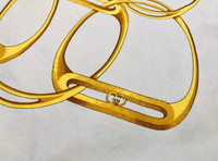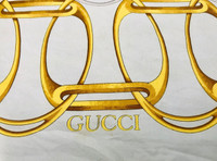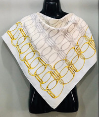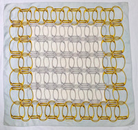 VINTAGE GUCCI GOLD & SILVER CHAIN THEME SILK SCARF Attractive Gucci vintage silk scarf. Soft blue border with gold chain and cream background with silver chain theme. A scarf which allows you to tie it multiple ways and get different looks! You can wear it as a scarf, a head wrap, or a purse accessory! Tag : Gucci Measurement (approx.) : - Width : 33 inches - Length : 34 inches Color : Cream Origin : Made in Italy Material : 100% Silk Condition : Used 9/10 - Some yellow stain. (See pictures) PAYMENT & SHIPPING • Accept Paypal ONLY • Please leave your phone number on the note while make a purchase. • This item will be ship along with Tracking Number after received a completed payment. • Shipping Method : DHL Express, ETA within 7 working days. Dear Valued Customer : • Please do not expect the item in mint condition unless stated. It’s because vintage and used items may have sign of wear. • Don’t worry about Custom tax fees during Shipping because I always declared all items as a Gift and wrote the value lower than original price usually $10 only • Please don't hesitate to contact me if you have any inquiries ATTENTION • Please pay close attention to the measurement provided. • Do not rely on tag size as pre-worn items may have been altered, stretched or shrunk & vintage sizes do not directly translate the current sizes. • The best way to ensure a correct fit is to compare our measurements with the measurement of a similar items that you know fits yours well. • Please enlarge the photos for clearer image. Please read the descriptions and see the pictures carefully! Don’t forget to check out and follow my shop so that you won’t miss out more and any new great stuff and great deals. Thank you. 👌🏻