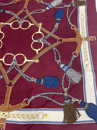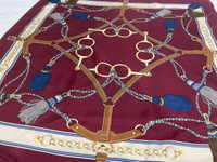 LONGCHAMP SILK SCARF NECKERCHIEF Beautiful belt and tessel design scarf in maroon color by Longchamp. An exclusive design scarf which allows you to tie it multiple ways and get different looks! You can wear it as a scarf, a head wrap, or a purse accessory! Tag : Longchamp Measurement (approx.) : - Width : 34 inches - Length : 34.5 inches Color : Red Origin : Made in Italy Material : 100% Silk Condition : Gently Used 9/10 PAYMENT & SHIPPING • Accept Paypal ONLY • Please leave your phone number on the note while make a purchase. • This item will be ship along with Tracking Number after received a completed payment. • Shipping Method : DHL Express, ETA within 7 working days. Dear Valued Customer : • Please do not expect the item in mint condition unless stated. It’s because vintage and used items may have sign of wear. • Don’t worry about Custom tax fees during Shipping because I always declared all items as a Gift and wrote the value lower than original price usually $10 only • Please don't hesitate to contact me if you have any inquiries ATTENTION • Please pay close attention to the measurement provided. • Do not rely on tag size as pre-worn items may have been altered, stretched or shrunk & vintage sizes do not directly translate the current sizes. • The best way to ensure a correct fit is to compare our measurements with the measurement of a similar items that you know fits yours well. • Please enlarge the photos for clearer image. Please read the descriptions and see the pictures carefully! Don’t forget to check out and follow my shop so that you won’t miss out more and any new great stuff and great deals. Thank you. 👌🏻