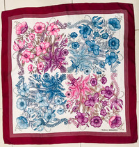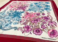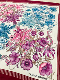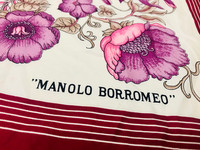 MANOLO BORROMEO SILK NECKERCHIEF SCARF BANDANA Cream color scarf with blue and purple floral design. With maroon edge highlight the scarf color. Tag : Manolo Borromeo Measurement (approx.) : - Width : 30” - Length : 30” Color : Cream Material : 100% Silk Condition : Gently Used 9/10 PAYMENT & SHIPPING • Accept Paypal ONLY • Please leave your phone number on the note while make a purchase. • This item will be ship along with Tracking Number after received a completed payment. • Shipping Method : FedEx International Shipping, ETA within 7 working days. Dear Valued Customer : • Please do not expect the item in mint condition unless stated. It’s because vintage and used items may have sign of wear. • Don’t worry about Custom tax fees during Shipping because I always declared all items as a Gift and wrote the value lower than original price usually $10 only • Please don't hesitate to contact me if you have any inquiries ATTENTION • Please pay close attention to the measurement provided. • Do not rely on tag size as pre-worn items may have been altered, stretched or shrunk & vintage sizes do not directly translate the current sizes. • The best way to ensure a correct fit is to compare our measurements with the measurement of a similar items that you know fits yours well. • Please enlarge the photos for clearer image. Please read the descriptions and see the pictures carefully! Don’t forget to check out my store for more great stuff. Thank you.