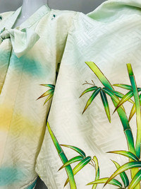 ADORABLE SUKAJAN TIGER DESIGN KIMONO Adorable emerald green color kimono with gold embroided tiger design. Very beautiful with waterfall and bamboo scenery. Tag : Kimono Measurement (approx.) : - Pit : 12” - Length : 39” Color : Green Material : Silk Condition : Used 8.5/10 - Defect : Stain of yellowish due to aging PAYMENT & SHIPPING • Accept Paypal ONLY • Please leave your phone number on the note while make a purchase. • This item will be ship along with Tracking Number after received a completed payment. • Shipping Method : FedEx International Shipping, ETA within 7 working days. Dear Valued Customer : • Please do not expect the item in mint condition unless stated. It’s because vintage and used items may have sign of wear. • Don’t worry about Custom tax fees during Shipping because I always declared all items as a Gift and wrote the value lower than original price usually $10 only • Please don't hesitate to contact me if you have any inquiries ATTENTION • Please pay close attention to the measurement provided. • Do not rely on tag size as pre-worn items may have been altered, stretched or shrunk & vintage sizes do not directly translate the current sizes. • The best way to ensure a correct fit is to compare our measurements with the measurement of a similar items that you know fits yours well. • Please enlarge the photos for clearer image. Please read the descriptions and see the pictures carefully! Don’t forget to check out and follow my shop so that you won’t miss out more and any new great stuff and great deals. Thank you. 👌🏻