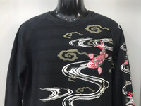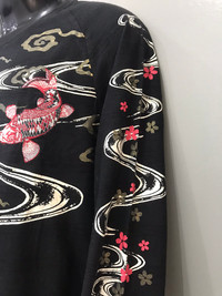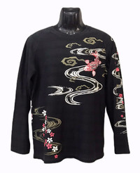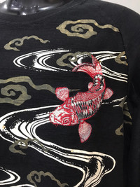EMBROIDED KOI FISH SUKAJAN LONG SLEEVE SHIRT Black shirt with koi fish theme. Long sleeve shirt with round shaped neckline. Embroided and printed koi fish sukajan design on front, back and sleeve. Very stylish outfit for your casual wear. Tag : Cure All Measurement (approx.) : - Pit : 21 inches - Length : 28 inches Color : Black Condition : Used 9/10 - Some yellow stain PAYMENT & SHIPPING • Accept Paypal ONLY • Please leave your phone number on the note while make a purchase. • This item will be ship along with Tracking Number after received a completed payment. • Shipping Method : FedEx International Shipping, ETA within 7 working days. Dear Valued Customer : • Please do not expect the item in mint condition unless stated. It’s because vintage and used items may have sign of wear. • Don’t worry about Custom tax fees during Shipping because I always declared all items as a Gift and wrote the value lower than original price usually $10 only • Please don't hesitate to contact me if you have any inquiries ATTENTION • Please pay close attention to the measurement provided. • Do not rely on tag size as pre-worn items may have been altered, stretched or shrunk & vintage sizes do not directly translate the current sizes. • The best way to ensure a correct fit is to compare our measurements with the measurement of a similar items that you know fits yours well. • Please enlarge the photos for clearer image. Please read the descriptions and see the pictures carefully! Don’t forget to check out and follow my shop so that you won’t miss out more and any new great stuff and great deals. Thank you. 👌🏻
