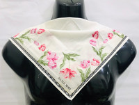HANAE MORI FLORAL HANDKERCHIEF BANDANA SCARF Beautiful red and pink flower on white handlerchief with dotted line on the edge. Tag : Hanae Mori Measurement (approx.) : - Width : 16 ” - Length : 17” Color : White Condition : Gently Used 9/10 PAYMENT & SHIPPING • Accept Paypal ONLY • Please leave your phone number on the note while make a purchase. • This item will be ship along with Tracking Number after received a completed payment. • Shipping Method : FedEx International Shipping, ETA within 7 working days. Dear Valued Customer : • Please do not expect the item in mint condition unless stated. It’s because vintage and used items may have sign of wear. • Don’t worry about Custom tax fees during Shipping because I always declared all items as a Gift and wrote the value lower than original price usually $10 only • Please don't hesitate to contact me if you have any inquiries ATTENTION • Please pay close attention to the measurement provided. • Do not rely on tag size as pre-worn items may have been altered, stretched or shrunk & vintage sizes do not directly translate the current sizes. • The best way to ensure a correct fit is to compare our measurements with the measurement of a similar items that you know fits yours well. • Please enlarge the photos for clearer image. Please read the descriptions and see the pictures carefully! Don’t forget to check out and follow my shop so that you won’t miss out more and any new great stuff and great deals. Thank you. 👌🏻
