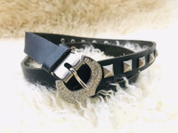 PUNK STYLE STUDDED BELT Punk style studded belt with decorative buckle head. Perfectly suited to tailored trousers, this versatile studded belt is a great accessory to own. In addition to weaving through belt loops, you can even use this black belt to cinch in the waist, and style over your long line cashmere cardigans. Measurement (approx.) : - Width : 0.75” - Length : 34.5” - Belt hole : 28” - 32” Color : Black Condition : Gently Used 9/10 PAYMENT & SHIPPING • Accept Paypal ONLY • Please leave your phone number on the note while make a purchase. • This item will be ship along with Tracking Number after received a completed payment. • Shipping Method : FedEx International Shipping, ETA within 7 working days. Dear Valued Customer : • Please do not expect the item in mint condition unless stated. It’s because vintage and used items may have sign of wear. • Don’t worry about Custom tax fees during Shipping because I always declared all items as a Gift and wrote the value lower than original price usually $10 only • Please don't hesitate to contact me if you have any inquiries ATTENTION • Please pay close attention to the measurement provided. • Do not rely on tag size as pre-worn items may have been altered, stretched or shrunk & vintage sizes do not directly translate the current sizes. • The best way to ensure a correct fit is to compare our measurements with the measurement of a similar items that you know fits yours well. • Please enlarge the photos for clearer image. Please read the descriptions and see the pictures carefully! Don’t forget to check out and follow my shop so that you won’t miss out more and any new great stuff and great deals. Thank you. 👌🏻