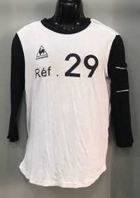 LE COQ SPORTIF SHIRT White shirt with black sleeve shirt from Le Coq Sportif. Tag : Le Coq Sportif Size : M Measurement (approx.) : - Pit : 19” - Length : 27” Material : 57% Cotton 38% Modal 5% Polyurethane Origin : Made in Korea Color : White/Black Condition : Gently Used 9/10 PAYMENT & SHIPPING • Accept Paypal ONLY • Please leave your phone number on the note while make a purchase. • This item will be ship along with Tracking Number after received a completed payment. • Shipping Method : Standard International Shipping, ETA 4-6 weeks. FedEx services upon request. Dear Valued Customer : • Please do not expect the item in mint condition unless stated. It’s because vintage and used items may have sign of wear. • Don’t worry about Custom tax fees during Shipping because I always declared all items as a Gift and wrote the value lower than original price usually $10 only • Please don't hesitate to contact me if you have any inquiries ATTENTION • Please pay close attention to the measurement provided. • Do not rely on tag size as pre-worn items may have been altered, stretched or shrunk & vintage sizes do not directly translate the current sizes. • The best way to ensure a correct fit is to compare our measurements with the measurement of a similar items that you know fits yours well. • Please enlarge the photos for clearer image. I don’t accept returns, exchange or cancellations. Please read the descriptions and see the pictures carefully! Don’t forget to check out my store for more great stuff. Thank you.