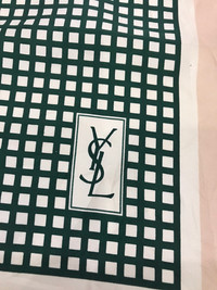 VINTAGE YVES SAINT LAURENT SQUARE PATTERN SCARF NECKERCHIEF Attractive green square pattern Yves Saint Laurent scarf with cream border. A scarf which allows you to tie it multiple ways and get different looks! You can wear it as a scarf, a head wrap, or a purse accessory! Tag : Yves Saint Laurent Measurement (approx.) : - Width : 31 inches - Length : 31 inches Color : Cream Condition : Used 9/10 PAYMENT & SHIPPING • Accept Paypal ONLY • Please leave your phone number on the note while make a purchase. • This item will be ship along with Tracking Number after received a completed payment. • Shipping Method : FedEx International Shipping, ETA within 7 working days. Dear Valued Customer : • Please do not expect the item in mint condition unless stated. It’s because vintage and used items may have sign of wear. • Don’t worry about Custom tax fees during Shipping because I always declared all items as a Gift and wrote the value lower than original price usually $10 only • Please don't hesitate to contact me if you have any inquiries ATTENTION • Please pay close attention to the measurement provided. • Do not rely on tag size as pre-worn items may have been altered, stretched or shrunk & vintage sizes do not directly translate the current sizes. • The best way to ensure a correct fit is to compare our measurements with the measurement of a similar items that you know fits yours well. • Please enlarge the photos for clearer image. Please read the descriptions and see the pictures carefully! Don’t forget to check out and follow my shop so that you won’t miss out more and any new great stuff and great deals. Thank you. 👌🏻
