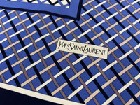 VINTAGE YVES SAINT LAURENT SCARF NECKERCHIEF Very beautiful Yves Saint Laurent scarf. Attractive blue and white diagonal grid pattern scarf. A scarf which allows you to tie it multiple ways and get different looks! You can wear it as a head scarf or a purse accessory! Tag : Yves Saint Laurent Measurement (approx.) : - Width : 29.5 inches - Length : 30 inches Color : Blue Condition : Used 7/10 - Have burn holes on several places. PAYMENT & SHIPPING • Accept Paypal ONLY • Please leave your phone number on the note while make a purchase. • This item will be ship along with Tracking Number after received a completed payment. • Shipping Method : DHL Express, ETA within 7 working days. Dear Valued Customer : • Please do not expect the item in mint condition unless stated. It’s because vintage and used items may have sign of wear. • Don’t worry about Custom tax fees during Shipping because I always declared all items as a Gift and wrote the value lower than original price usually $10 only • Please don't hesitate to contact me if you have any inquiries ATTENTION • Please pay close attention to the measurement provided. • Do not rely on tag size as pre-worn items may have been altered, stretched or shrunk & vintage sizes do not directly translate the current sizes. • The best way to ensure a correct fit is to compare our measurements with the measurement of a similar items that you know fits yours well. • Please enlarge the photos for clearer image. Please read the descriptions and see the pictures carefully! Don’t forget to check out and follow my shop so that you won’t miss out more and any new great stuff and great deals. Thank you. 👌🏻