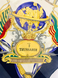 ELEGANCE TRUSSARDI SILK SCARF NICKERCHIEF Elegance cream color Trussardi silk scarf. Very beautiful scarf with balance, telescope & globe theme. A scarf which allows you to tie it multiple ways and get different looks! You can wear it as a scarf, a head wrap, or a purse accessory! Tag : Trussardi Measurement (approx.) : - Width : 34.5 inches - Length : 35 inches Color : Cream Material : 100% Silk Condition : Gently Used 9/10 PAYMENT & SHIPPING • Accept Paypal ONLY • Please leave your phone number on the note while make a purchase. • This item will be ship along with Tracking Number after received a completed payment. • Shipping Method : FedEx International Shipping, ETA within 7 working days. Dear Valued Customer : • Please do not expect the item in mint condition unless stated. It’s because vintage and used items may have sign of wear. • Don’t worry about Custom tax fees during Shipping because I always declared all items as a Gift and wrote the value lower than original price usually $10 only • Please don't hesitate to contact me if you have any inquiries ATTENTION • Please pay close attention to the measurement provided. • Do not rely on tag size as pre-worn items may have been altered, stretched or shrunk & vintage sizes do not directly translate the current sizes. • The best way to ensure a correct fit is to compare our measurements with the measurement of a similar items that you know fits yours well. • Please enlarge the photos for clearer image. Please read the descriptions and see the pictures carefully! Don’t forget to check out and follow my shop so that you won’t miss out more and any new great stuff and great deals. Thank you. 👌🏻