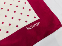 VINTAGE BURBERRYS SILK SCARF The most luxurious Burberrys vintage scarf. Very beautiful cream scarf with red polka dot. A scarf which allows you to tie it multiple ways and get different looks! You can wear it as a scarf, a head wrap, or a purse accessory! Tag : Burberrys Measurement (approx.) : - Width : 34 inches - Length : 35 inches Color : Cream Material : 100% Silk Condition : Gently Used 9/10 PAYMENT & SHIPPING • Accept Paypal ONLY • Please leave your phone number on the note while make a purchase. • This item will be ship along with Tracking Number after received a completed payment. • Shipping Method : FedEx International Shipping, ETA within 7 working days. Dear Valued Customer : • Please do not expect the item in mint condition unless stated. It’s because vintage and used items may have sign of wear. • Don’t worry about Custom tax fees during Shipping because I always declared all items as a Gift and wrote the value lower than original price usually $10 only • Please don't hesitate to contact me if you have any inquiries ATTENTION • Please pay close attention to the measurement provided. • Do not rely on tag size as pre-worn items may have been altered, stretched or shrunk & vintage sizes do not directly translate the current sizes. • The best way to ensure a correct fit is to compare our measurements with the measurement of a similar items that you know fits yours well. • Please enlarge the photos for clearer image. Please read the descriptions and see the pictures carefully! Don’t forget to check out and follow my shop so that you won’t miss out more and any new great stuff and great deals. Thank you. 👌🏻