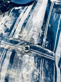 VINTAGE LAPINEAL SHIRT DESIGNED BY WILROCK (USA), INC Tag : Lapineal Size : L Measurement (approx.) : - Pit : 22 ” - Length : 27” Color : Blue Origin : Made in New York, USA Condition : Gently Used 9/10 PAYMENT & SHIPPING • Accept Paypal ONLY • Please leave your phone number on the note while make a purchase. • This item will be ship along with Tracking Number after received a completed payment. • Shipping Method : Standard International Shipping, ETA 4-6 weeks. FedEx services upon request. Dear Valued Customer : • Please do not expect the item in mint condition unless stated. It’s because vintage and used items may have sign of wear. • Don’t worry about Custom tax fees during Shipping because I always declared all items as a Gift and wrote the value lower than original price usually $10 only • Please don't hesitate to contact me if you have any inquiries ATTENTION • Please pay close attention to the measurement provided. • Do not rely on tag size as pre-worn items may have been altered, stretched or shrunk & vintage sizes do not directly translate the current sizes. • The best way to ensure a correct fit is to compare our measurements with the measurement of a similar items that you know fits yours well. • Please enlarge the photos for clearer image. I don’t accept returns, exchange or cancellations. Please read the descriptions and see the pictures carefully! Don’t forget to check out my store for more great stuff. Thank you.
