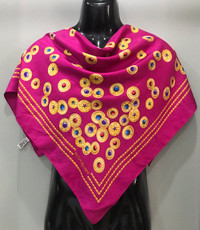 VINTAGE YVES SAINT LAURENT PINK PENDANT SCARF NECKERCHIEF Attractive & luxury pink Yves Saint Laurent scarf. Gold pendant & button with colorful jewel design. A scarf which allows you to tie it multiple ways and get different looks! You can wear it as a scarf, a head wrap, or a purse accessory! Tag : Yves Saint Laurent Measurement (approx.) : - Width : 34 inches - Length : 35 inches Color : Pink Condition : Gently Used 9/10 PAYMENT & SHIPPING • Accept Paypal ONLY • Please leave your phone number on the note while make a purchase. • This item will be ship along with Tracking Number after received a completed payment. • Shipping Method : FedEx International Shipping, ETA within 7 working days. Dear Valued Customer : • Please do not expect the item in mint condition unless stated. It’s because vintage and used items may have sign of wear. • Don’t worry about Custom tax fees during Shipping because I always declared all items as a Gift and wrote the value lower than original price usually $10 only • Please don't hesitate to contact me if you have any inquiries ATTENTION • Please pay close attention to the measurement provided. • Do not rely on tag size as pre-worn items may have been altered, stretched or shrunk & vintage sizes do not directly translate the current sizes. • The best way to ensure a correct fit is to compare our measurements with the measurement of a similar items that you know fits yours well. • Please enlarge the photos for clearer image. Please read the descriptions and see the pictures carefully! Don’t forget to check out and follow my shop so that you won’t miss out more and any new great stuff and great deals. Thank you. 👌🏻