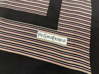 VINTAGE YVES SAINT LAURENT SCARF NECKERCHIEF Very beautiful Yves Saint Laurent scarf. Attractive brown scarf with stripes design. A scarf which allows you to tie it multiple ways and get different looks! You can wear it as a scarf, a head wrap, or a purse accessory! Tag : Yves Saint Laurent Measurement (approx.) : - Width : 31 inches - Length : 30 inches Color : Brown Condition : Used 7/10 - Several pinholes PAYMENT & SHIPPING • Accept Paypal ONLY • Please leave your phone number on the note while make a purchase. • This item will be ship along with Tracking Number after received a completed payment. • Shipping Method : DHL Express, ETA within 7 working days. Dear Valued Customer : • Please do not expect the item in mint condition unless stated. It’s because vintage and used items may have sign of wear. • Don’t worry about Custom tax fees during Shipping because I always declared all items as a Gift and wrote the value lower than original price usually $10 only • Please don't hesitate to contact me if you have any inquiries ATTENTION • Please pay close attention to the measurement provided. • Do not rely on tag size as pre-worn items may have been altered, stretched or shrunk & vintage sizes do not directly translate the current sizes. • The best way to ensure a correct fit is to compare our measurements with the measurement of a similar items that you know fits yours well. • Please enlarge the photos for clearer image. Please read the descriptions and see the pictures carefully! Don’t forget to check out and follow my shop so that you won’t miss out more and any new great stuff and great deals. Thank you. 👌🏻