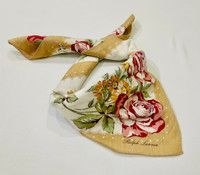 RALPH LAUREN HANDKERCHIEF NECKERCHIEF BANDANA White and brown border handkerchief with floral pattern by Ralph Lauren. Can be wear as handkerchief, bandana, scarf and pocket square. Tag : Ralph Lauren Measurement (approx.) : - Width : 19 inches - Length : 19.5 inches Color : Brown Condition : Used 9/10 - Little tear and yellow stain PAYMENT & SHIPPING • Accept Paypal ONLY • Please leave your phone number on the note while make a purchase. • This item will be ship along with Tracking Number after received a completed payment. • Shipping Method : DHL Express, ETA within 7 working days. Dear Valued Customer : • Please do not expect the item in mint condition unless stated. It’s because vintage and used items may have sign of wear. • Don’t worry about Custom tax fees during Shipping because I always declared all items as a Gift and wrote the value lower than original price usually $10 only • Please don't hesitate to contact me if you have any inquiries ATTENTION • Please pay close attention to the measurement provided. • Do not rely on tag size as pre-worn items may have been altered, stretched or shrunk & vintage sizes do not directly translate the current sizes. • The best way to ensure a correct fit is to compare our measurements with the measurement of a similar items that you know fits yours well. • Please enlarge the photos for clearer image. Please read the descriptions and see the pictures carefully! Don’t forget to check out and follow my shop so that you won’t miss out more and any new great stuff and great deals. Thank you. 👌🏻