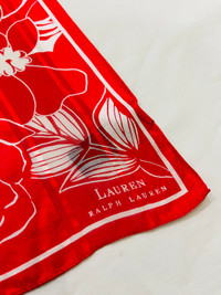 RALPH LAUREN SILK SCARF Attractive silk scarf by Ralph Lauren. Very beautiful red scarf with floral design. A scarf which allows you to tie it multiple ways and get different looks! You can wear it as a scarf, a head wrap, or a purse accessory! Tag : Ralph Lauren Measurement (approx.) : - Width : 11.5 inches - Length : 52 inches Color : Red Condition : Used 9/10 PAYMENT & SHIPPING • Accept Paypal ONLY • Please leave your phone number on the note while make a purchase. • This item will be ship along with Tracking Number after received a completed payment. • Shipping Method : FedEx International Shipping, ETA within 7 working days. Dear Valued Customer : • Please do not expect the item in mint condition unless stated. It’s because vintage and used items may have sign of wear. • Don’t worry about Custom tax fees during Shipping because I always declared all items as a Gift and wrote the value lower than original price usually $10 only • Please don't hesitate to contact me if you have any inquiries ATTENTION • Please pay close attention to the measurement provided. • Do not rely on tag size as pre-worn items may have been altered, stretched or shrunk & vintage sizes do not directly translate the current sizes. • The best way to ensure a correct fit is to compare our measurements with the measurement of a similar items that you know fits yours well. • Please enlarge the photos for clearer image. Please read the descriptions and see the pictures carefully! Don’t forget to check out and follow my shop so that you won’t miss out more and any new great stuff and great deals. Thank you. 👌🏻