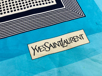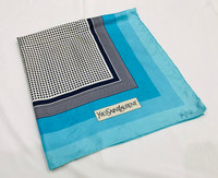 VINTAGE YVES SAINT LAURENT SQUARE DESIGN SCARF NECKERCHIEF The most beautiful blue Yves Saint Laurent silk scarf. Very beautiful blue border scarf with black and white square pattern. A scarf which allows you to tie it multiple ways and get different looks! You can wear it as a scarf, a head wrap, or a purse accessory! Tag : Yves Saint Laurent Measurement (approx.) : - Width : 30 inches - Length : 30.5 inches Color : Blue Condition : Used 8.5/10 - Some yellow stain & name marking on the edge PAYMENT & SHIPPING • Accept Paypal ONLY • Please leave your phone number on the note while make a purchase. • This item will be ship along with Tracking Number after received a completed payment. • Shipping Method : FedEx International Shipping, ETA within 7 working days. Dear Valued Customer : • Please do not expect the item in mint condition unless stated. It’s because vintage and used items may have sign of wear. • Don’t worry about Custom tax fees during Shipping because I always declared all items as a Gift and wrote the value lower than original price usually $10 only • Please don't hesitate to contact me if you have any inquiries ATTENTION • Please pay close attention to the measurement provided. • Do not rely on tag size as pre-worn items may have been altered, stretched or shrunk & vintage sizes do not directly translate the current sizes. • The best way to ensure a correct fit is to compare our measurements with the measurement of a similar items that you know fits yours well. • Please enlarge the photos for clearer image. Please read the descriptions and see the pictures carefully! Don’t forget to check out and follow my shop so that you won’t miss out more and any new great stuff and great deals. Thank you. 👌🏻