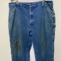 Vintage Carhartt Baggy Jeans Distressed Painter W40 Manual waist size:40 Outseam: 44”in Inseam: 32”in Open leg: 9.5”in Front rise:13”in Thigh: 15”in Knee: 12”in Sale are final Sku:smktaj24