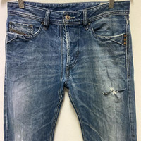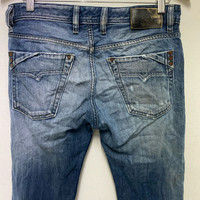 Vintage Diesel Mennit Regular Straight Distressed Size on tag 30 Manual waist size: 32 Outseam 39.5”in Inseam 29.5”in Open leg 8”in Thigh 11”in Knee 8.5”in Front rise 10”in