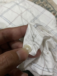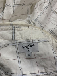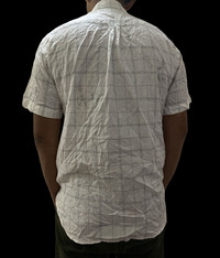 Good condition. Size M Margaret Howell Short Sleeve Band Cotton Shirt Stripe White / Black Black stain on back SKU: 2020