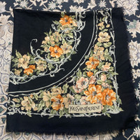 YvesSaintLaurent Flower Wool Scarf Black Orange Multicolor Yellow YSL Yves Saint Laurent 33”x33” 100% wool Size 33”in x 33”in Condition:8/10 A little flew, refer Please refer a picture Sale are final Sku:1