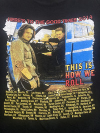 Florida Georgia Line 2014 Tour T-Shirt Here’s To The Good Times Black XL Country Band Tee This is a vintage Florida Georgia Line 2014 Tour T-Shirt featuring their “Here’s To The Good Times” tour. The front and back both display graphics of the band members, the tour name, and tour locations. The shirt is black, size XL, and made of 100% cotton. The fabric has a nice faded look, giving it a great vintage Y2K aesthetic. Brand: Unbranded Size: XL (Check measurements) Color: Black Material: 100% Cotton Condition: Good vintage condition with some natural wear and fading, adding to its authentic vintage appeal. Florida Georgia Line Shirt, Country Music Tee, Vintage Band Shirt, 2014 Tour Shirt, Here’s To The Good Times, Y2K Band Tee, Rock Country Tee, Music Festival T-Shirt, Black Concert Shirt, Country Rock #FloridaGeorgiaLine #BandTee #VintageTee #CountryMusic #ConcertTee #2014Tour #CountryRock #RetroTee #Y2KFashion #MusicMerch