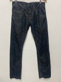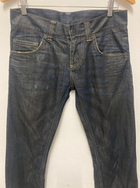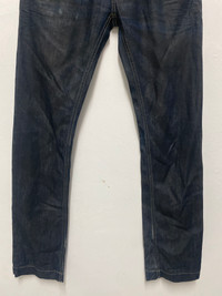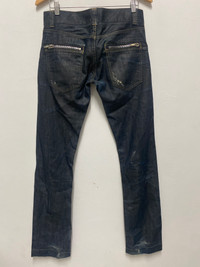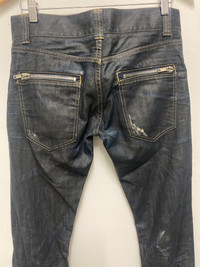 Black-Tag IT Italian Raw Denim Jeans with Zippered Back Pockets - Size 28 Made in Italy Black-Tag IT is a lesser-known boutique denim label from Italy, often recognized for its premium materials and distinctive Italian tailoring. Made in Italy, these jeans reflect the country’s strong craftsmanship in fashion and textile design. The brand likely emerged in the 2000s, during the surge of artisanal denim influenced by both Japanese selvedge culture and European minimalism. Elevate your denim game with these high-quality Italian-made jeans from Black-Tag IT. Crafted from 100% raw cotton denim, this pair features a classic 5-pocket silhouette enhanced with unique zippered back pockets. The denim exhibits beautiful natural fades and whiskering from wear, giving it a lived-in vintage appeal. Perfect for fans of raw denim and collectors of niche European labels. Made in Italy. Tag size 28 (manual size:32, outseam:42”,inseam:33”, open leg: 7.5”, front rise:8”,thigh: 10”,knee:8”). Italian raw denim jeans, Black Tag IT jeans, zippered back pocket jeans, artisanal denim, made in Italy jeans, selvedge-style jeans, vintage faded denim, boutique denim brands, raw denim collectors, men’s Italian jeans #BlackTagIT #ItalianDenim #RawDenim #MadeInItaly #VintageJeans #ZipperPocketJeans #DenimCollectors #SelvedgeStyle #ArtisanDenim #MensVintageFashion