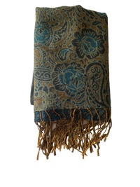 Blue and brown paisley scarf with fringe