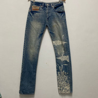 Buden Jeans Skulls Hybric Waist size: 30 Inseam: 31.5” Thigh: 10” Knee: 7.5” Open leg: 6” Front rise: 10”
