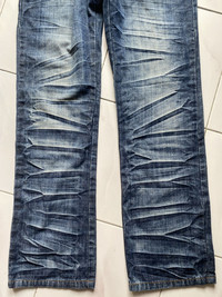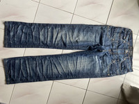 Size: 29 Outseam: 43” Inseam: 32” Thigh: 11” Knee: 9” Open leg: 8.5” Front rise: 11” Condition: No flaws (8/10). Please ask me any question before purchase. Free shipping by Flexipack Shipping. Sent me your binding offer.
