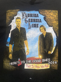 Florida Georgia Line 2014 Tour T-Shirt Here’s To The Good Times Black XL Country Band Tee This is a vintage Florida Georgia Line 2014 Tour T-Shirt featuring their “Here’s To The Good Times” tour. The front and back both display graphics of the band members, the tour name, and tour locations. The shirt is black, size XL, and made of 100% cotton. The fabric has a nice faded look, giving it a great vintage Y2K aesthetic. Brand: Unbranded Size: XL (Check measurements) Color: Black Material: 100% Cotton Condition: Good vintage condition with some natural wear and fading, adding to its authentic vintage appeal. Florida Georgia Line Shirt, Country Music Tee, Vintage Band Shirt, 2014 Tour Shirt, Here’s To The Good Times, Y2K Band Tee, Rock Country Tee, Music Festival T-Shirt, Black Concert Shirt, Country Rock #FloridaGeorgiaLine #BandTee #VintageTee #CountryMusic #ConcertTee #2014Tour #CountryRock #RetroTee #Y2KFashion #MusicMerch