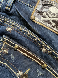 🔥DOPE🔥YOSHITOMO NARA LOLITA Exotic Vintage Denim Low Rise Cropped Style Jeans ➤ BRAND NAME : YOSHITOMO NARA LOLITA MADE in KOREA for Japan's Market CONDITION : (USED : 7/10) MATERIAL : Cotton Denim ......…................................................................ ➤ SIZE MANUAL MEASUREMENT / LAID FLAT (INCHES) WAIST : 15.5”(W31") (SIZE ON TAG : 30) LENGTH ; *Outseam : 42" *Inseam : 32" (PLEASE CHECK ACTUAL SIZE & PICTURES CAREFULLY, ALL SALES ARE FINAL, NO RETURN OR REFUND) .......….............................................................. ➤✈️WORLDWIDE EXPRESS SHIPPING ✈️ The Items Will Be Shipped From Asia Via DHL / FedEx (ETA) 5~8 Days Worldwide ❗️(PLEASE SEND ME YOUR CONTACT NUMBER AFTER MAKING A PURCHASE FOR SHIPPING PURPOSE :TO BE WRITTEN ON THE PARCEL) ありがとうございました(Thank You)