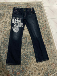 BATSU STUDIO Japanese Denim Cross Painter Jeans Punk Designer Waist 30 SIZE MEASUREMENTS :- Waist: 30 inches Thigh: 20 inches Inseam: 30.5 inches Outseam (Total Length) : 39 inches Leg Opening: 16 inches Rise : 8.5 inches Good Condition.As attached in the pictures. PLEASE LEAVE YOUR PHONE NUMBER ON THE NOTE WHILE MAKE A PURCHASE. Etc: Don't Worry About Customs Tax or Fees. I usually Declare all Items as 'Gift' & Declare Value of Item Lower than Original Price. All Items are Sold "AS IS" so Please be Sure to Read The Entire Description and Look at All The Pictures. Any Question and More Details Please Don't Hesitate to Contact Me. ATTENTION : Please pay close attention to measurements provided. Do not rely on tag size as pre-worn items may have been altered, stretched or shrunk & vintage sizes do not directly translate the modern sizes.The best way to ensure a correct fit is to compare our measurements with the measurements of a similar item that you know fits you well. REF : yoji1/f