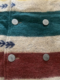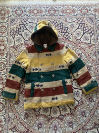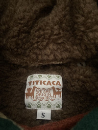 Vintage Titicaca Wool Blend Hooded Jacket Southwestern Striped Pattern Small This is a vintage Titicaca wool-blend hooded jacket featuring a bold Southwestern-inspired striped pattern in earthy tones of green, yellow, red, and beige. The jacket has a cozy sherpa fleece lining, a double-breasted button closure with floral-engraved metal buttons, and adjustable cuffs. Made for warmth and style, it’s perfect for collectors of bohemian, Native American, or folk-style clothing. • Titicaca is a brand known for its ethnic and folk-inspired designs, originating in 1977. • Wool-blend jackets like this are highly sought after for their durability and warmth. • The Southwestern aesthetic, with native-inspired patterns, is popular in vintage and boho fashion markets. vintage titicaca jacket, wool blend hooded coat, southwestern striped jacket, boho wool coat, vintage sherpa jacket, folk style coat, 70s 80s 90s jacket, double-breasted wool jacket #VintageJacket #Titicaca #SouthwesternStyle #WoolCoat #BohoFashion #EthnicWear #SherpaLined #WinterFashion