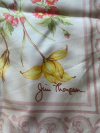 Jim Thompson Vintage Silk Scarf Floral Pattern Thailand Elegant vintage Jim Thompson silk scarf featuring a beautiful floral pattern with vibrant pink, yellow, and green hues on a soft pastel background. Made from premium Thai silk, this luxurious accessory is perfect for collectors and fashion enthusiasts. A timeless piece that adds sophistication to any outfit. Jim Thompson is a renowned brand specializing in high-quality Thai silk products. The brand was founded by an American entrepreneur who played a significant role in reviving Thailand’s silk industry. Jim Thompson scarves are highly sought after for their exquisite craftsmanship, making them valuable in the vintage and luxury fashion market. Jim Thompson silk scarf, vintage Thai silk, floral silk scarf, designer scarf, luxury accessories, Jim Thompson Thailand, collectible scarf, silk fashion, elegant scarf, vintage fashion #JimThompson #SilkScarf #VintageFashion #LuxuryAccessories #FloralScarf #ThaiSilk #DesignerScarf #TimelessStyle #FashionCollectibles #ElegantStyle
