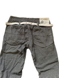 John Bull Japan Hickory Stripe Buckleback Denim - Condition : 9/10 - Size : - Waist : 28 Inch - Outseam : 39 Inch - Inseam : 32 Inch - Thigh : 20 Inch - Leg Open : 17 Inch - Colour : Hickory Stripe - Material : Cotton - Cutting : Low Waist Tappered - Made : Japan 🔔 READ THIS BEFORE PURCHASES !! THIS ITEM HAD BEEN USED BEFORE. DEFINITELY THE SIGN OF WEAR WILL BE THERE & THERE MAY BE LITTLE IMPURITIES DUE TO AGE. YOU CAN ASK ME ANY QUESTION BEFORE PURCHASE IT. ANY CANCELLATION AFTER PURCHASE WILL NOT BE SERVED. ✅ PAYPAL ONLY ✅ NO RETURN OR REFUND ✅ PLEASE MAKE REASONABLE OFFER ✅ SHIPPING WORLDWIDE ✅ Malaysia post registered ✅ MORE DISCOUNT & FREE SHIPPING FOR MULTIPLE PURCHASES ✅ CHECK MEASUREMENTS & ALL PHOTOS BEFORE PURCHASE ✅ PURCHASING THIS ITEM A BUYER AGREE WITH RULES,LOOKED THROUGH ALL PHOTOS,KNOW MEASUREMENTS & DONT HAVE ANY COMPLAINTS REGARDING SIZING ✅ ANY IMPORT TAXES,DUTY FEES & VAT ARE BUYER’S RESPONSIBILITY ✅PLEASE LEAVE YOUR PHONE NO AFTER PURCHASE 🙌🏾 THANKS FOR VISITS MY STORE ✌🏾 Sku:230