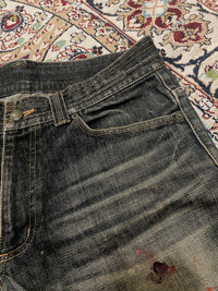 Katharine Hamnett - archive design from AW1989 “clean up or die” size on tags L measurements Waist - 16” front rise -10” thigh - 11” inseam - 32” leg opening- 9” *inches Sku: amerika