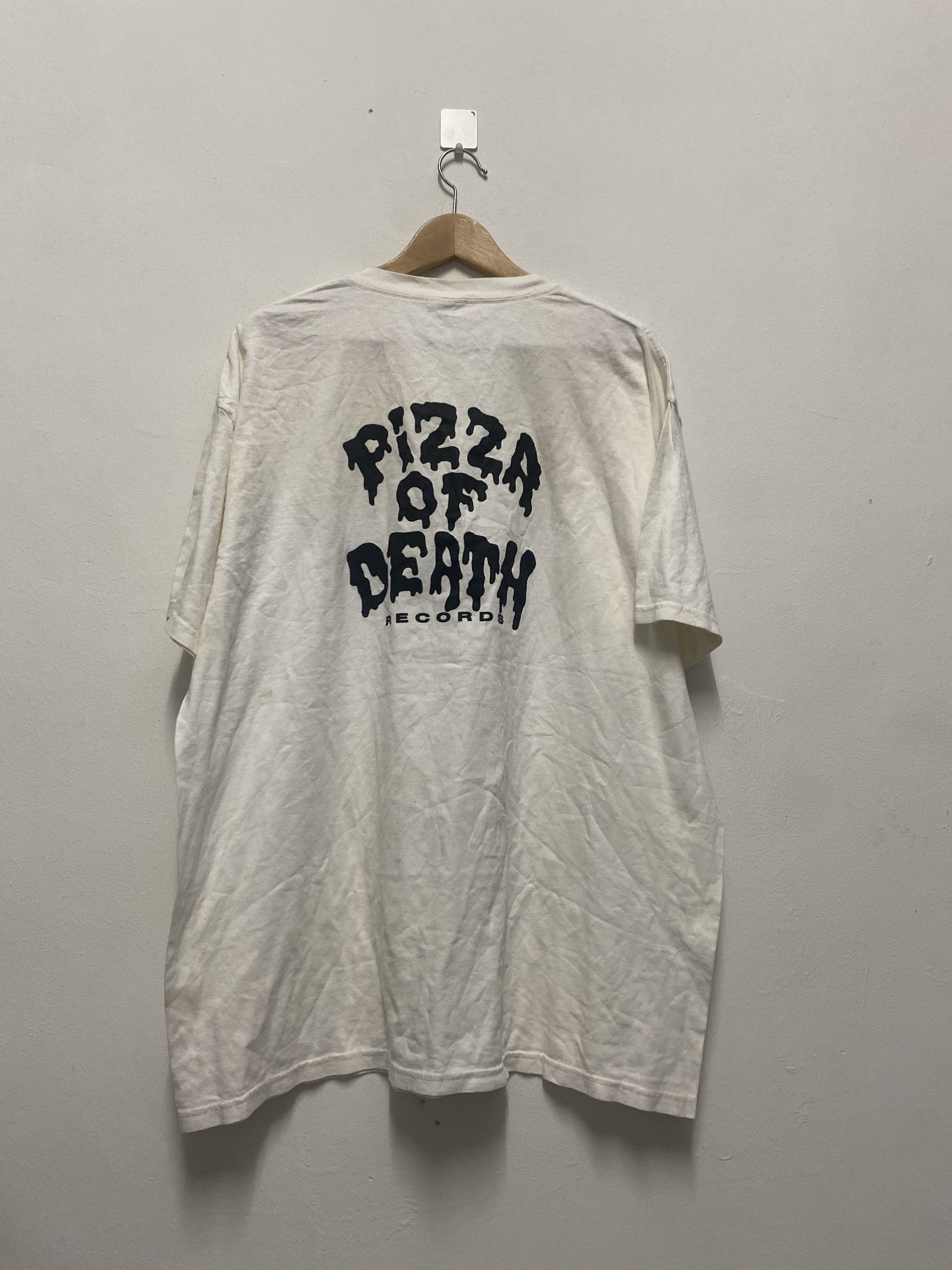 Pizza Of Death Records Tee——————————————————————— LABEL ⚡️Label : Anvil ⚡️Label Size : XL Please Check Product Description Carefully Before Purchasing Item.————————————————————— ACTUAL MANUAL SIZE MEASUREMET ⚡️Width (Armpit to Armpit): 25” ⚡️Length (Top Shoulder to Bottom): 31” Please Check Measurements Carefully Before Purchasing Item. ————————————————————— CONDITION ⚡️Used Item With Condition 7/10 (70%) ⚡️little yellow stain This is Used Clothing. Please Dont Expected This Item To Be Like New Or In Pristine Condition. Please Ask Any Question Before Purchase Any Item. All Conversation Will Be Reply As Soon As Possbile. ——————————————————————— Thanks For Visting My Store, Viewing My Item And Dont Forget To Tell All Your Friends.